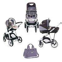 1. Options bassinet, car seat, stroller (front or rear facing), footmuff, raincover AND a diaper bag
